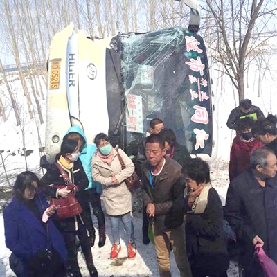 6日上午,在佳木斯市桦川县境内,一辆佳木斯至同江的客车与一辆面包车相撞,导致客车侧翻多人受伤。目前,事故原因有待进一步调查。(网友供图)