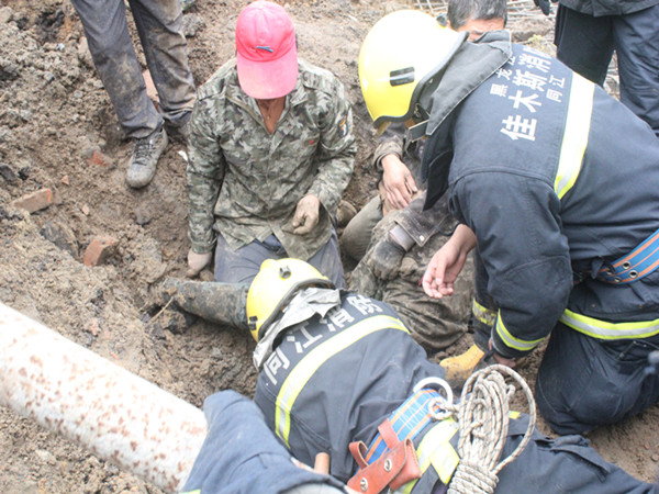 9月25日上午8时,同江市公安消防大队接到报警称:位于同江市第三小学后的工地发生了塌方,一名工人腿部被泥土和钢筋死死压住,无法脱身。接到报警后,同江大队立即调派10名指战员,火速赶赴现场进行救援。